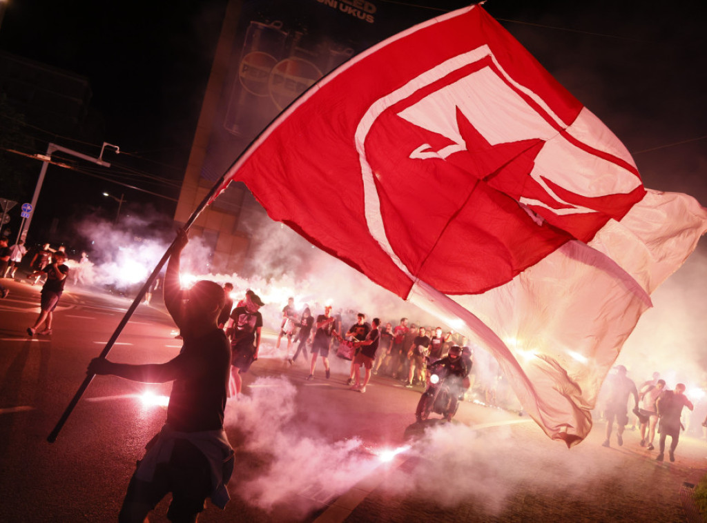 Navijači i fudbaleri Zvezde kod Pobednika na Kalem...